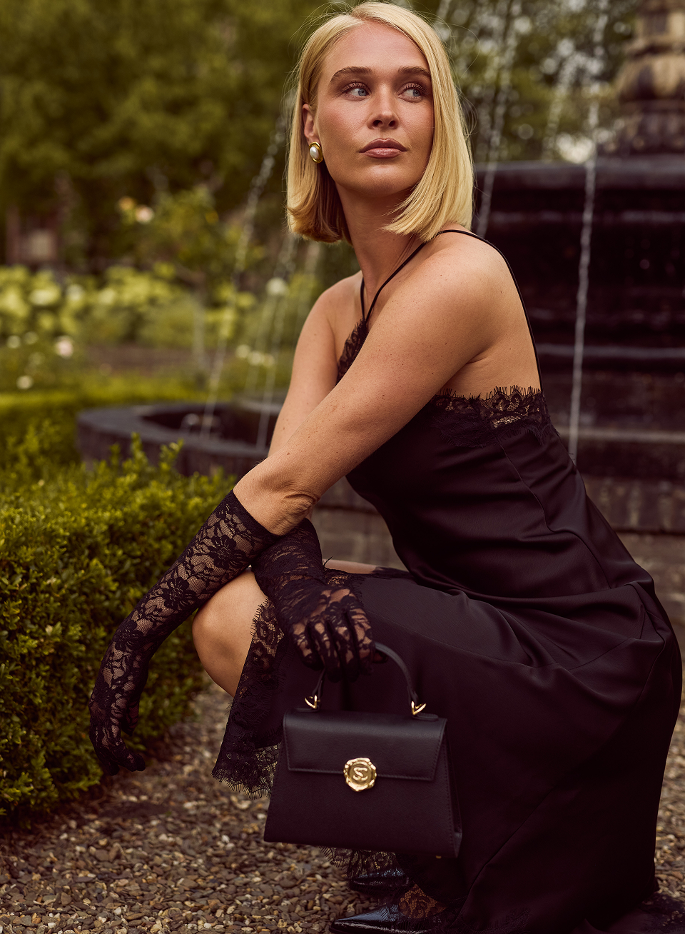 Designed for versatility, it can be worn by hand for a statement of elegance or carried with